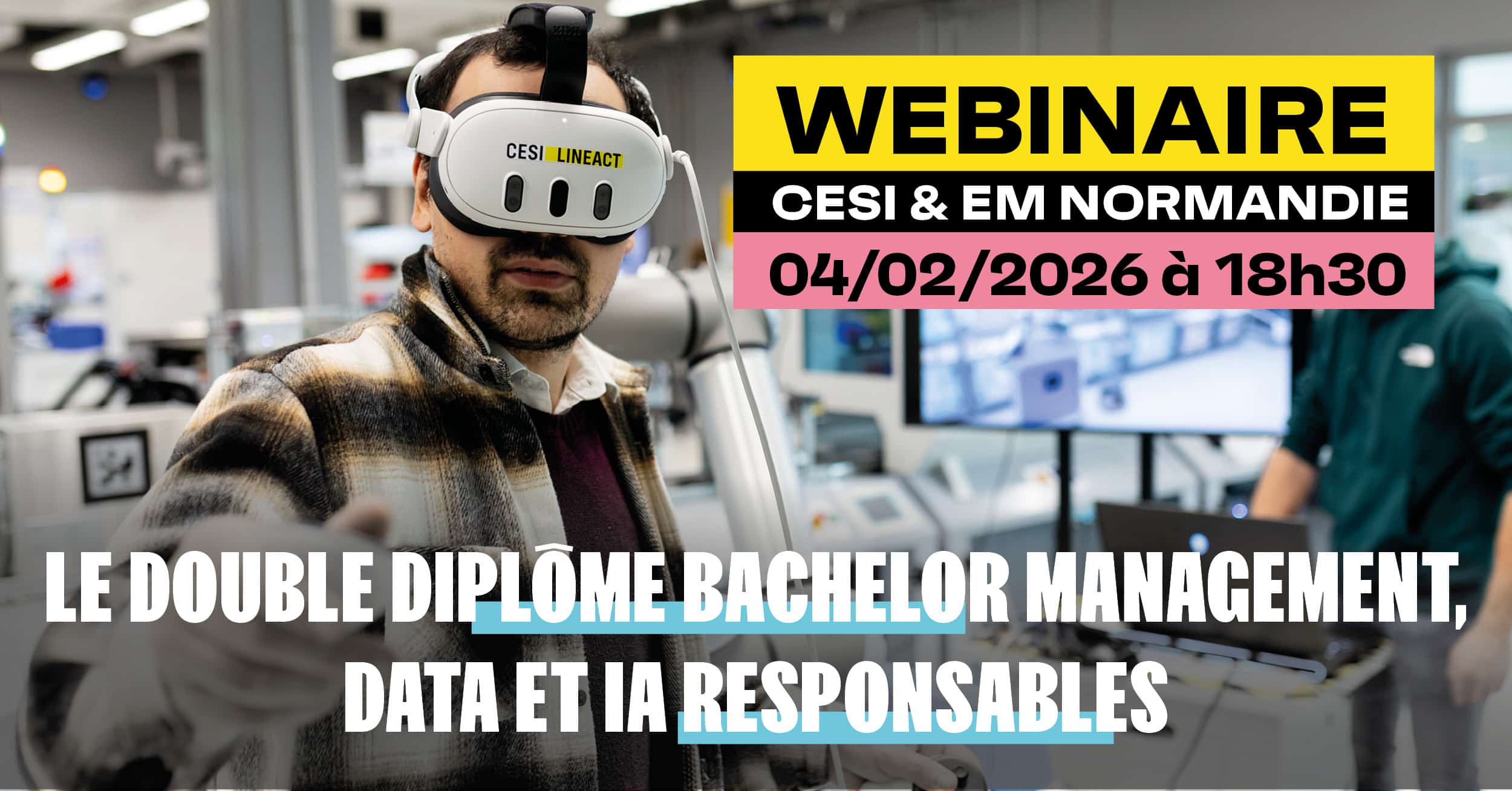 CESI et l’EM Normandie vous propose de découvrir leur double diplôme « Bachelor Management, Data et IA Responsables » au travers d’un webinaire, le mercredi 4 février.